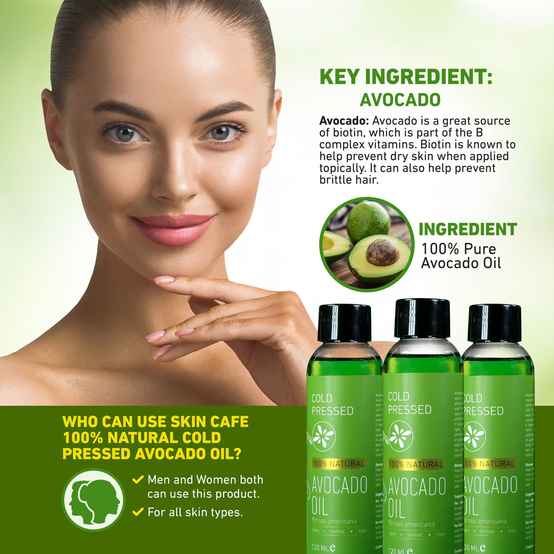 Cafe 100% Natural Cold Pressed Avocado Oil is enriched with vitamin (A, B, D